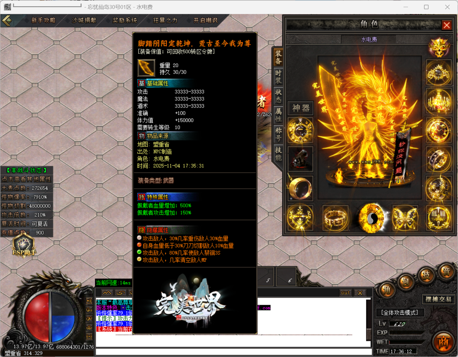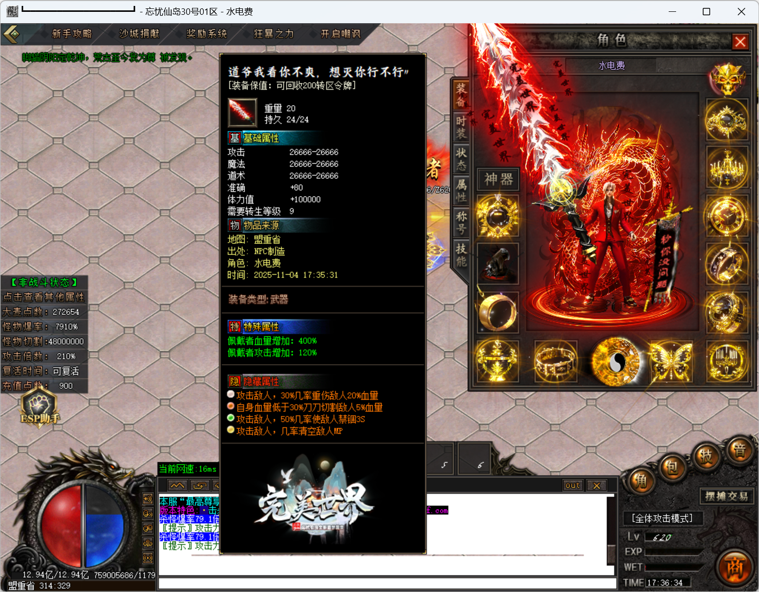 - 【版本说明】: 上线就送MAX刀速+双倍爆率提升.装备嗷嗷全爆.人人土豪装逼又激情!